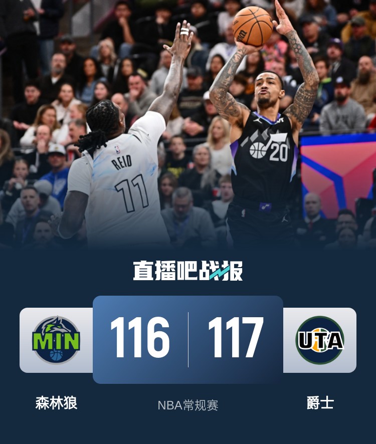 凯斯勒扣篮准绝杀 科林斯29+12 华子停赛 森林狼不敌垫底爵士