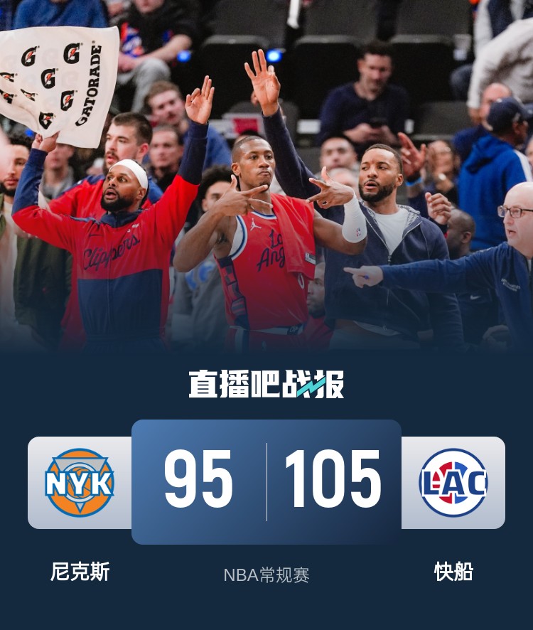 哈登27+7 小卡20+7+6 唐斯23+10 布伦森缺阵 快船击退尼克斯