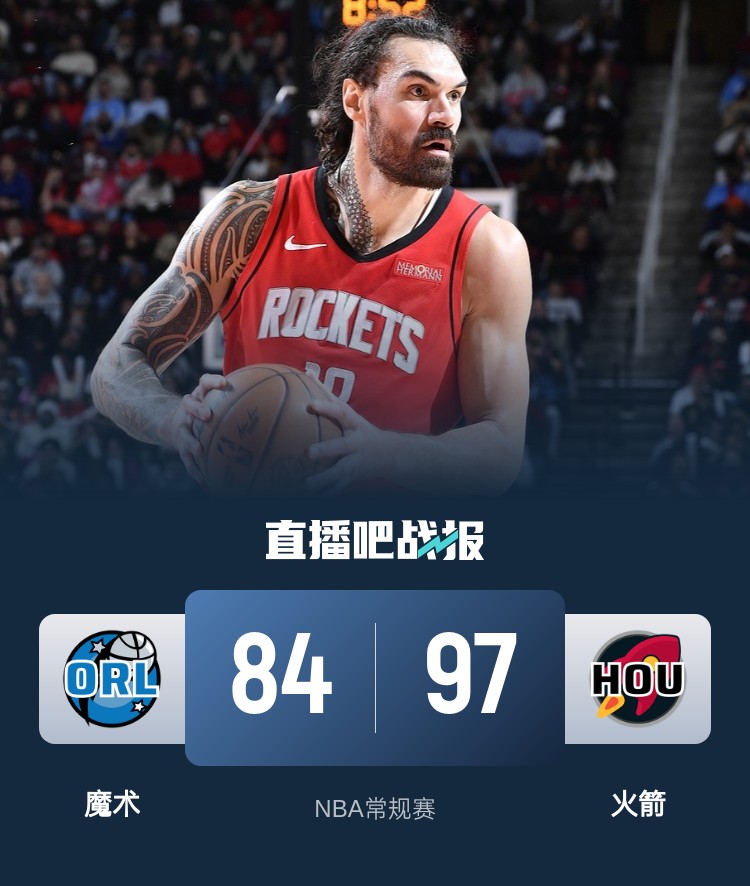 小史密斯20+7 亚当斯11前场板 班凯罗25分 火箭擒魔术迎3连胜