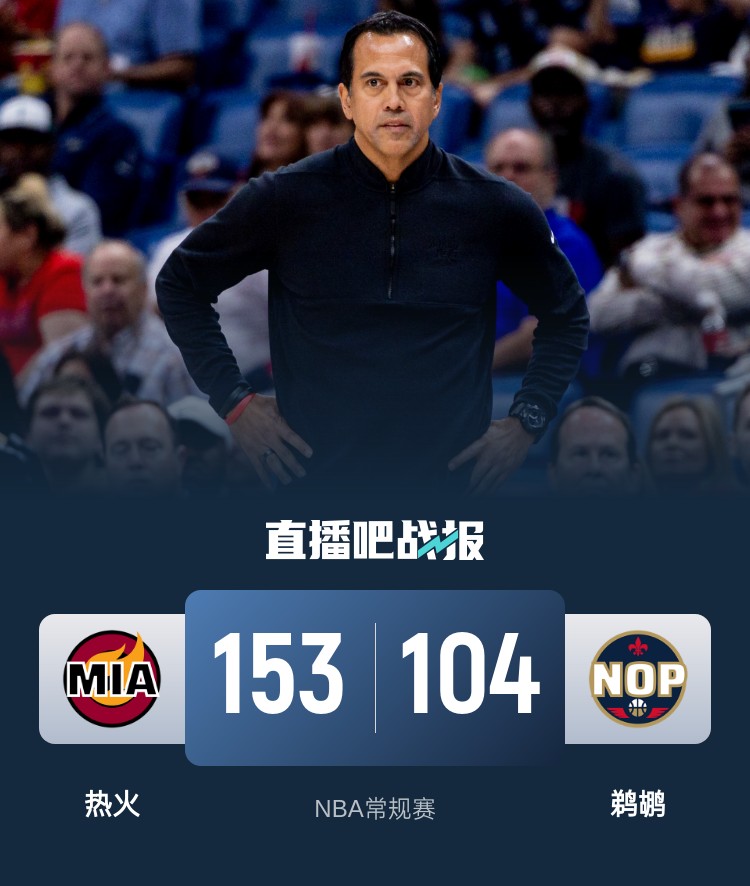 阿德巴约23+12 希罗22分 热火10人上双49分狂胜鹈鹕