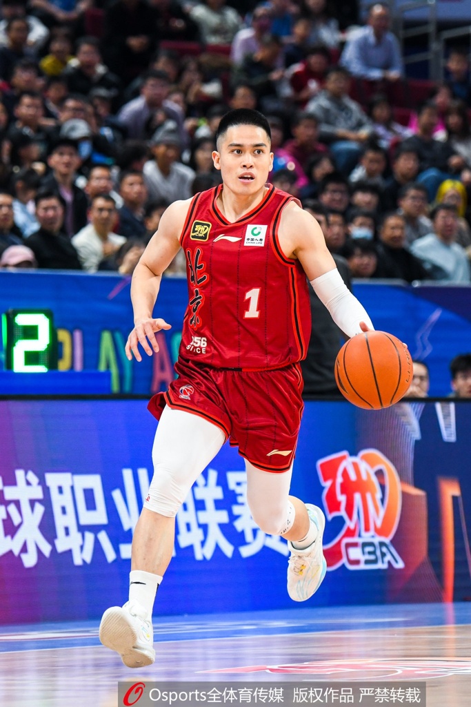陈盈骏全场打了38分钟,12投7中砍下全场最高的23分外加10次助攻6个篮板,成为北京男篮的持球的大核,不仅要和周琦打一五挡拆来激活全队进攻,而且首钢压到24秒的投篮总是靠他压哨拆弹。