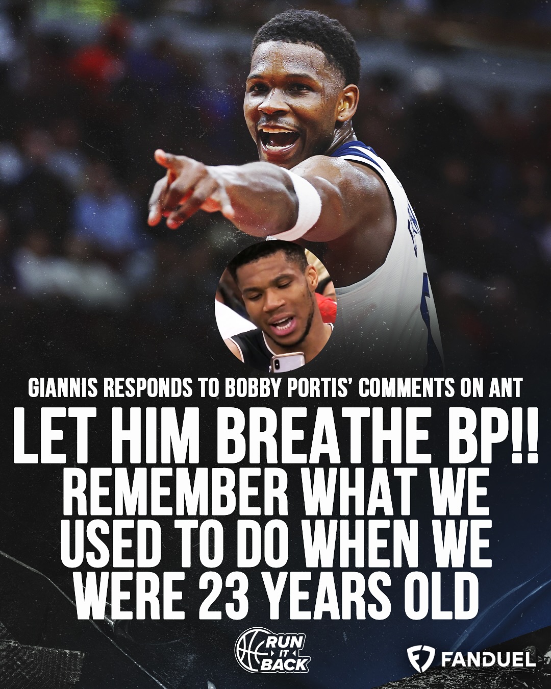 雄鹿当家球星字母哥表示:“让他喘息下吧,波比,还记得我们23岁时做过的事吗?”