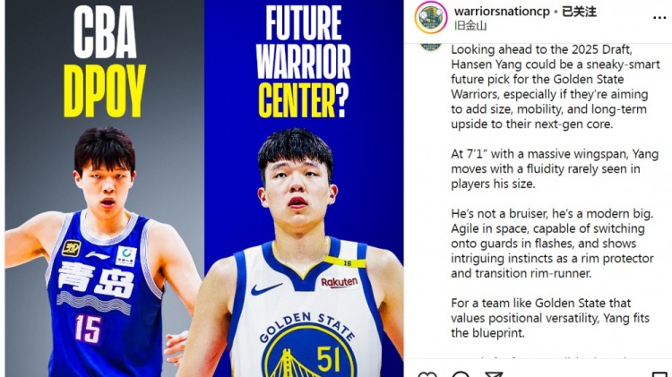 “对于像勇士这样重视位置多样性的球队来说,杨瀚森完全符合他们的蓝图。尽管他还远未成熟,进攻端主要依靠身高和柔和的手感,跳投和力量还在发展中,但他具备良好的球场感觉、时机把握和努力精神,这正是勇士发展体系所擅长的地方。球队可以将他视为长期投资,就像他们培养凯文-卢尼那样,但杨更高更灵活。随着库里、吉米和追梦逐渐老去,乔纳森-库明加和波杰姆斯基不断崛起,勇士的未来取决于建立新的支持阵容。杨不会在第一天就成为明星,但如果球队有耐心,他可能会悄悄成为勇士下一代防守核心的重要支柱。 ”