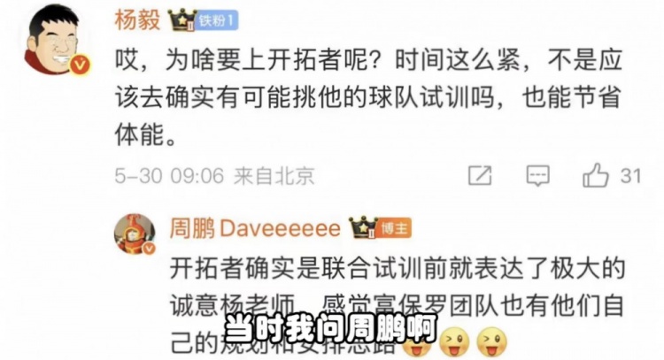 此前杨瀚森试训开拓者时,知名评论员杨毅曾质疑为何要去开拓者试训,认为开拓者选择小杨的可能性不高。