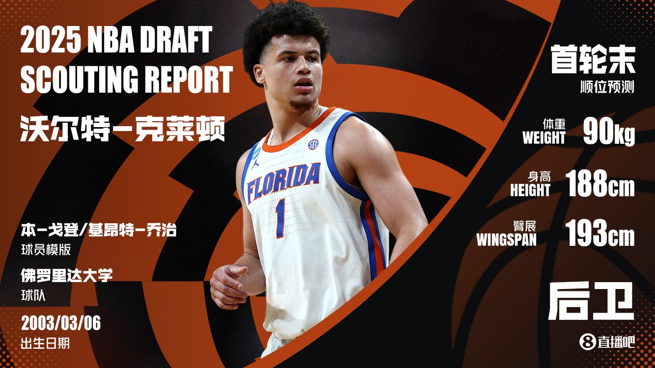 首轮第18顺位,华盛顿奇才选择了来自佛罗里达大学的小沃尔特-克莱顿(Walter Clayton Jr.)将其交易至犹他爵士,换回第21签和2031年、2032年以及今年43号签!