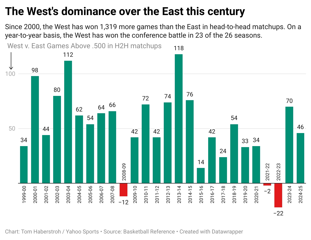 1999-00赛季34(东西部直接交锋中,西部比东部多赢34场)
