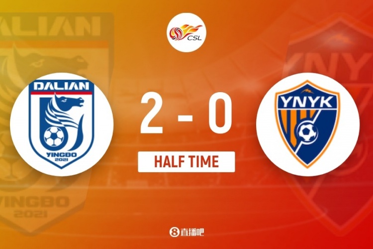 伤停补时5分钟。上半场比赛结束,大连英博2-0云南玉昆。