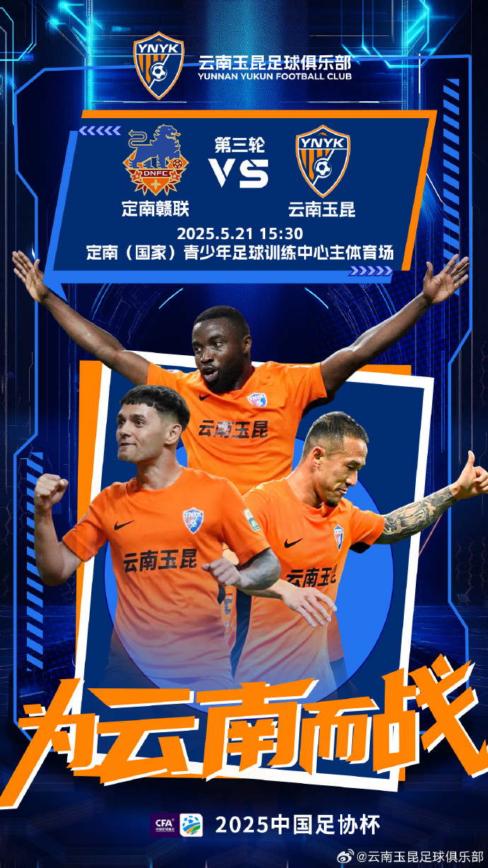 05月21日讯 北京时间5月21日15:30,足协杯第3轮,中甲球队定南赣联对阵中超球队云南玉昆。赛前,双方本场比赛名单公布。