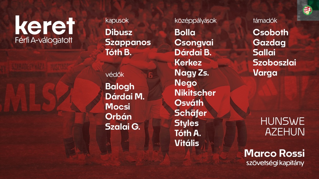 匈牙利大名单:索博领衔,绍洛伊、科尔克兹在列,6月将战瑞典